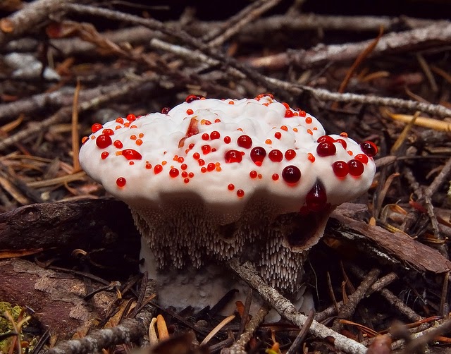 بـ“Hydnellum peckii” أو ما يطلق عليه فطر نزيف الأسنان، فهو يشبه الأسنان